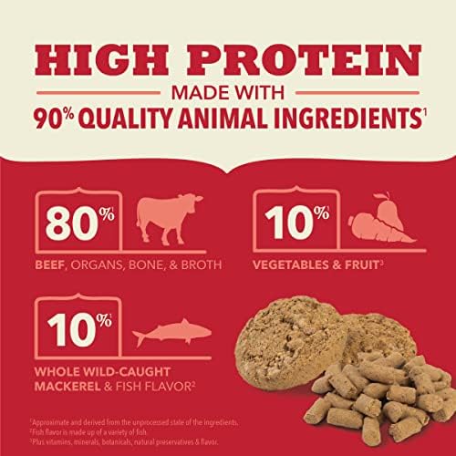 Comes in bite sized morsels or breakable patties. Can be fed alone as a meal or as a delicious topper on your dog’s favorite ACANA kibble.