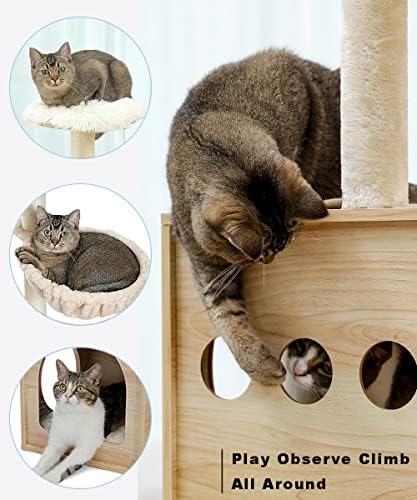 🐱TRUSTWORTHYABLE QUALITY – Our cat tree has durable posts, covered with top quality, natural sisal, and crafted with thick engineered wood. This will guarantee durability and longevity, bringing long-lasting joy to you and your feline friends.