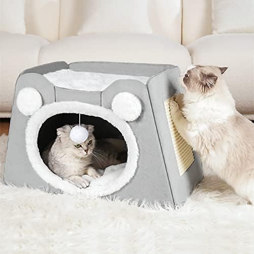 Spacious & Playful Space: The large cat bed in the bottom area provides comfort and privacy and is large enough for two cats of all ages. Plus, this cat cube features a durable scratching pad and plush hanging ball to keep indoor cats entertained and satisfied.