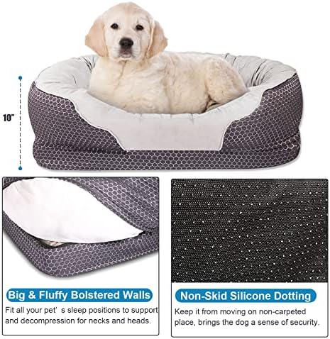 【No-Slip Bottom Rectangle Bed】: Quilted gray cover compliments any home decor and is removable and machine washable; Non-slip rubber backing prevents the the bed from sliding on hardwood floors and tile; Cotton padded walls are designed to instantly contour to the neck and head for optimum comfort ,Ideals for use in hardwood floors, sofa, car back seat.