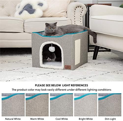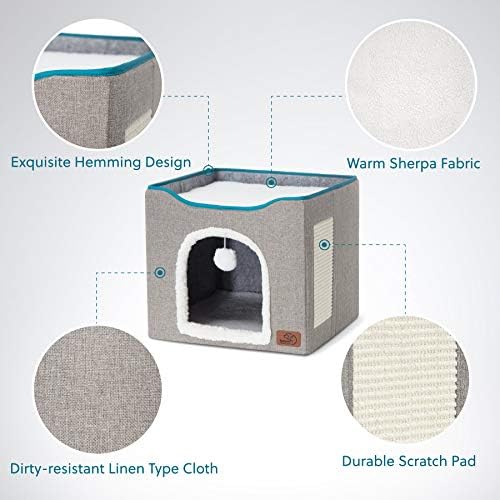Pet Safe Design: Cat hideaway made from pet-friendly MDF materials with CARB Certification and soft lambswool fabric. This large cat house is equipped with a durable sisal scratching board and plush hanging ball to keep your cat engaged and happy.