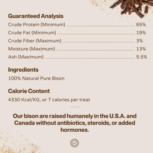 ETHICALLY SOURCED & MADE IN THE USA: Our bison dog treats are humanely raised in the United States and Canada, without added hormones, antibiotics, or steroids. We take pride in producing these high-quality treats right here in the USA.