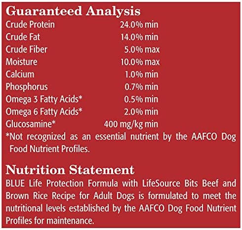 Contains one (1) 15 lb. Bag of BLUE Life Protection Formula Adult Dry Dog Food, Beef and Brown Rice