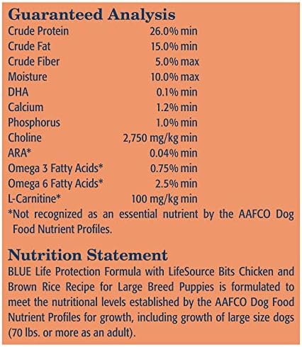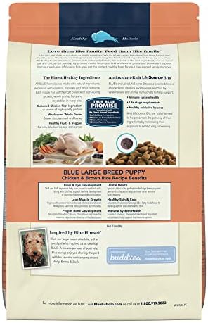 Contains one (1) 15 lb. Bag of BLUE Life Protection Formula Large Breed Puppy Dry Dog Food, Chicken and Brown Rice