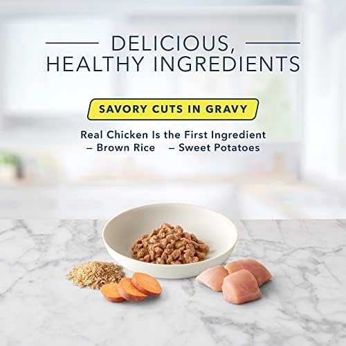 BLUE Tastefuls Savory Singles wet cat food starts with tasty cuts of real chicken as the first ingredient in savory gravy with wholesome brown rice and sweet potatoes. This cat food from Blue Buffalo gives you a portion that’s just right for one meal, so no more storing open cat food in the fridge. And our easy-to-serve twin-pack cups make feeding a breeze – no utensils are necessary! So snap it, peel it and serve it to your cat.