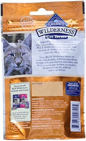 Contains one (1) 2-oz bag of BLUE Wilderness Grain Free Soft-Moist Cat Treats, Chicken & Turkey
