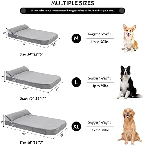 MULTIPLE SIZES& SUGGESTIONS: Medium dog bed 34″*22″*6″ for under dogs up to 50 lbs, Large dog bed 40″*26″*7″ for under dogs up to 75 lbs, XL large dog bed: 46″*28″*7″ for under dogs up to 100lbs. Please choose the bed fit for your pets according to the recommended weight.