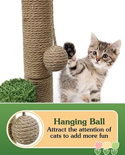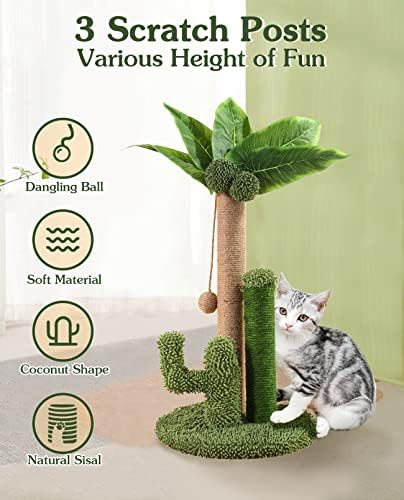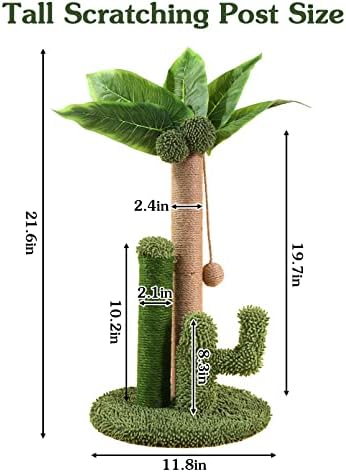 🌴【Natural Sisal Post】BNOSDM palm tree cat scratching post with 3 scratch poles covered with 2 plush balls and canna leaves on the top. Tightly wound natural sisal allows your cat to sharpen their claws and helps clean your cat’s nails.