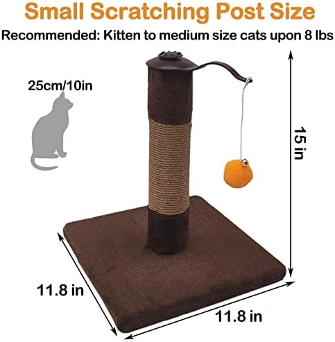 👉【360° Rotation Adds Fun】Small cat scratch post features a dangling bell ball. The top 360° rotation allows cats to play 360 degrees with plenty of room to stretch out and satisfy their natural scratching instincts.