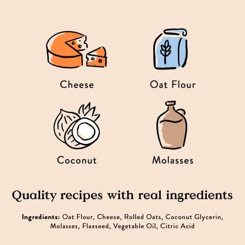 Perfect for Everyday Treating: With just 8 ingredients (like oat flour, cheese and rolled oats!) and only 9 calories per treat, you can feel good treating your favorite pup to this yummy recipe.