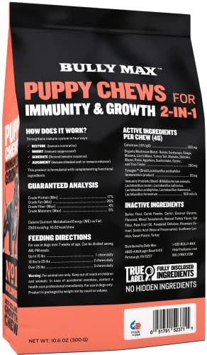 Each serving contains a healthy dose of Colostrum, the high-protein component in motherโs milk that helps stimulate the growth of your puppyโs muscles and immune system. A strong immune system is crucial to keeping your puppy protected from sickness and disease.