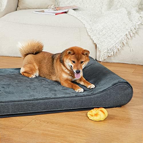 【FOR BETTER CHOOSE & USE】Medium dog beds 30″x20″x5″ (3″ Center; 5″Edges) for pets up to 30 lbs. Large dog beds 36×24″x5.5″ (3.2″Center; 5.5″Edges) for pets up to 50 lbs. X-Large dog beds 45″x30″x6″ (3.5″Center; 6″Edges) for pets up to 80 lbs. XX-Large dog bed 51″x36″x8″ (5″Center; 8″Edges) for pets up to 125 lbs. If you want more space for your pet, it is recommended to choose a size up. Please leave it flat about 48 hours to make the dog bed bounce back before using.