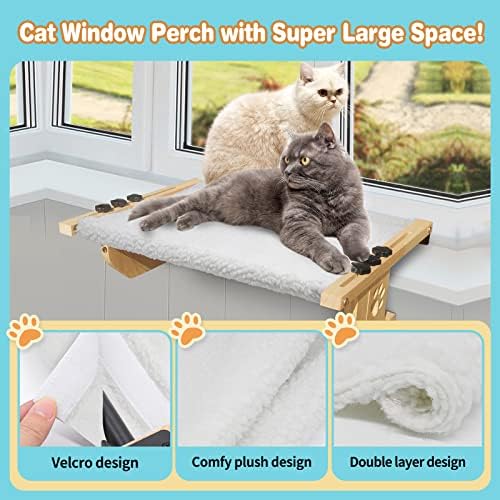 Cat Window Perch Sturdy Cat Window Hammock with Wood and Metal Frame-No Drilling Required-Multiple Ways to Use-Cat Bed for Windowsill,Floor,Bedside or Cabinet-Suitable for Large Cats(L-White Plush)