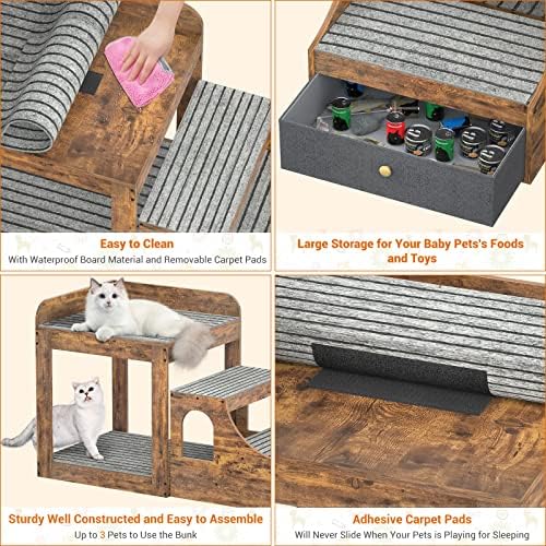 🐾 Large Space with a Storage Drawer – The space underneath the bed is large too, so your dogs and cats can play together. The top bed space is 17.72*17.72 inches, providing a safe and large space to lie down and rest. It can hold up to 150 lbs. The drawer underneath the stair is large too, you can install your pet’s toys and food too.