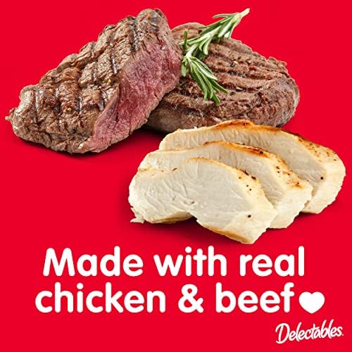 Your favorite lickable cat treats are now available in a Non-Seafood Bisque formula! Hartz Delectables unique wet treats combine tender chicken and beef with a smooth sauce, your kitty will be begging for more! This nutritious seafood-free recipe entangles the meat and sauce together so your cat can not only lick up the sauce but enjoy (and gobble up!) the meat too. Even the most finicky eaters enjoy this delectable wet treat – use the single serve pouch as a cat food topper, a quick snack, or a special treat and your cat will love you back! This pack includes 12 – 1.4-ounce pouches of pure kitty satisfaction. Try our Non-Seafood recipe in both Stew & Bisque enjoyable textures in Chicken, Chicken & Veggies, Chicken & Beef, Chicken & Cheese, and Chicken & Duck.