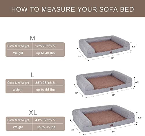 Multiple Sizes & Service: Orthopedic Pet Sofa Bed is available in 3 sizes to accommodate all dog and cats.M(28”x23”) dog bed for pets up to 40lbs, L(35”x26”) pet bed for pets up to 55lbs, XL(41”x32”) sofa bed for pets up to 95lbs. Please select the most suitable pet bed according to the size chart and the actual size of the pet. If you have any issue about dog bed, please to contact us.