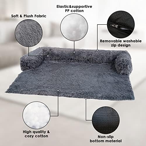 【More Comforatanble and Better Quality than Others】Dog bed made of high quality soft plush material, the plush is super soft, warm, fluffy and comfortable, feels like mom’s fur. Keep your dog off the cold floor, the surface plush is durable and not easy to fall off, avoiding your pet being suffocated by flying fleece, dog couch bed to create a healthy and pleasant sleeping environment, anti-anxiety, let your dog sleep well.