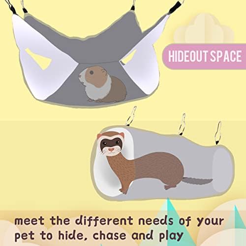 【Suitable for small animals】The guinea pig bunk bed hammock size: 13.4 x 13.4 in, tunnel hammock size: 19.7x 5.9 in,suitable for most small animals, such as ferrets, guinea pigs, chinchillas, hedgehogs, hamsters, parrots, rats, squirrels, etc.