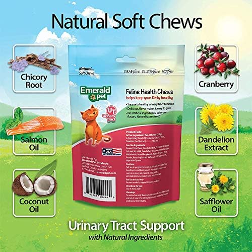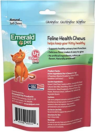 Emerald pet feline health all natural, limited ingredient treats have a soft, moist texture with a taste cats love. Real chicken liver is combined with health benefitting ingredients like salmon Oil, coconut oil, and ground flaxseed to help aid digestion and keep your kitty healthy. Designed to promote digestive health for common cat issues and keep them smiling for years to come. Made in the USA from only the finest us ingredients. No artificial ingredients, colors or flavors. Naturally preserved.