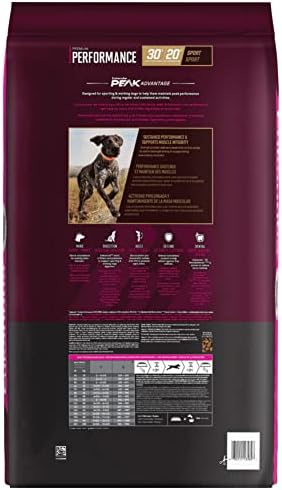 Formulated for sporting, tracking, and working dogs with an optimal nutrient ratio of 30% protein and 20% fat to help maintain peak performance during daily and sustained activities