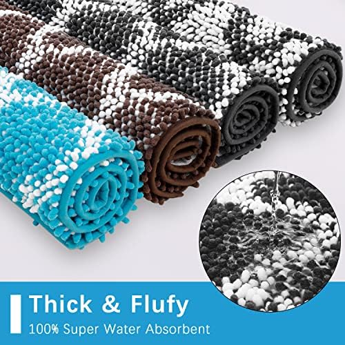 🐶 Super Absorbent: Muddy rug feature thousands of individual microfiber, super water absorbent doormat is more water absorbant than any others absorbent indoor rug, high pile chenille bathrug can help save your floor from dripping water when you’re stepping out of the bath sink, shower, spa, to make your feet feel the ultimate luxury enjoyment. pls place quick dry bath mats for bathroom on dry flat surface only, water under shaggy bathroom rugs will slip.