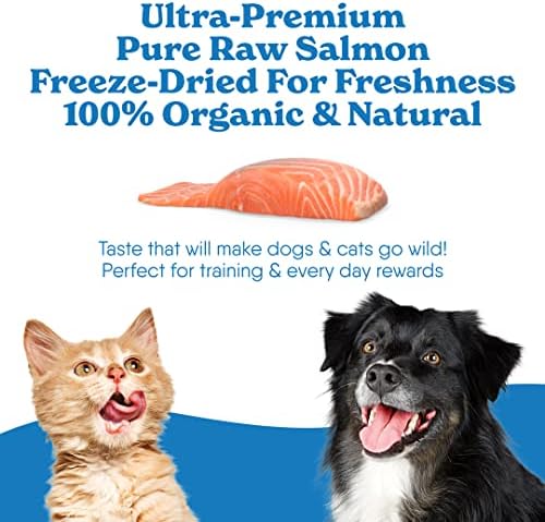 ULTRA-PREMIUM RAW SALMON: Our ultra-premium raw salmon is not only 100% organic and natural but also freeze-dried for maximum freshness and superior quality. It’s the perfect treat for dogs and cats, with a taste that will make them go wild, making it ideal for training and everyday rewards. Our salmon is processed for human consumption, ensuring it meets the highest standards, and if it’s good enough for people, it’s certainly good enough for our beloved pets.