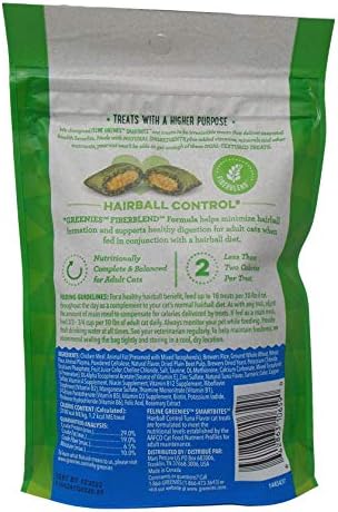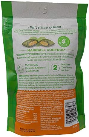 Bundle Includes: Feline Greenies Hairball Control Crunchy Treats For Cats 2 Flavor Mega Variety Pack | (1 each): Chicken, Tuna (4.6 Ounces); Bundle Includes: MerlinsMart Furry Family Friends 40 Fun & Useful Animal Facts Your Family Will Love Booklet and Turbo Hairy Monster (color will vary). No artificial flavors, preservatives or filler. Bigger Bags. Convenient 2 flavor Variety. Resealable bag keeps them fresh. This item is not a manufacturer-created variety pack and will not be sent in the original manufacturer’s packaging.