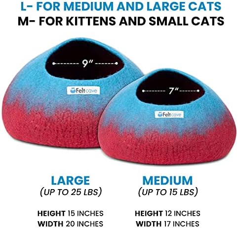 CHOOSE YOUR SIZE FOR MAX COMFORT: Our Medium Size wool cat bed is perfectly tailored for Sphynx, Abyssinian, Exotic and other similar breeds up to 12 lbs. Check out our Large Size felt cat caves for fur babies weighing from 13 – 25 lbs.