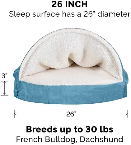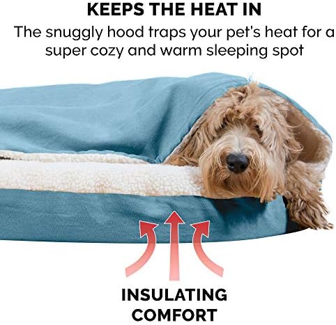Furhaven Sherpa & Suede Snuggery Dog Beds are perfect for pets who love to burrow into blankets and other cozy spots! Snuggeries are constructed to let your dog or cat burrow and snuggle into the bed, with the top part of the bed functioning as a soft, shapeable, blanket. The soft hood feature can be used with or without the flexible plastic hoop to best suit your petβs sleep style and burrow habits. The plastic hoop helps your pet get under the soft hood but does not stay up so that your pet will stay covered and cozy! The bed is fully lined in cream-colored sherpa fabric and provides a pleasant retreat for your petβs privacy, warmth, and comfort! The mattress is made from egg-crate orthopedic foam, which promote your dog or catβs ideal posture and joint health. Your pet will love their new cozy pet bed while you’ll love having more room in your bed and less pet dander and fur! Easy to clean. Cover care: Remove from core before washing (see hang tag and/or seam label for care instructions). Foam care: Spot clean with mild soap; rinse. Blot, then air dry. Do not wring. Not for unsupervised use by animals with chewing behavior.