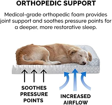 PRODUCT DETAILS: Orthopedic Dog Bed, Gray; Large – 36″ x 27″ x 6.5″ (3″ Base Foam Height; Sleep Surface: Approx. 28″ x 23″)