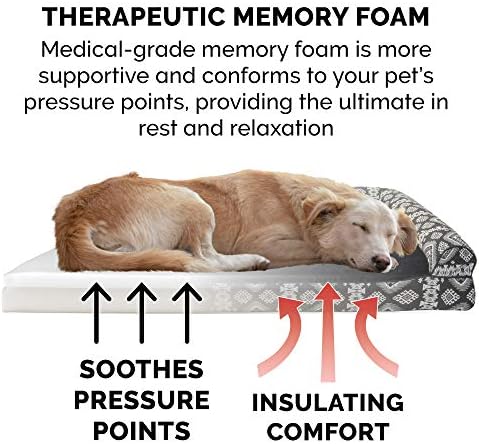 EASY ON JOINTS: The memory foam top contours to your pet’s figure, cushioning pressure points and improving body alignment; fluff-filled bolsters support the neck, back, hips, and joints to help ease discomfort and promote restful sleep