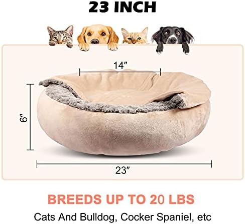 ❤CHOOSE SIZE: GASUR 2 in 1 covered pet bed comes with an attached blanket hood a donut shape. We suggest the small bed (23×23”) for dogs and cats up to 20lbs, and the medium bed (26×26”) for pets up to 30lbs.