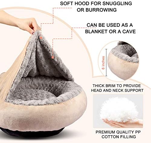 ❤COMFORTABLE DOG BED: The puppy bed interior sleep surface is lined with insulating rose swirl plush fabric, while the hooded blanket exterior features easy-care chamois microsuede; both fabrics are soft-to-touch and serve to suit your pet’s desired form of comfort. Suitable for all seasons for your pet snugger on our dog bed.