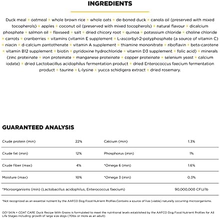 WITH NATURAL INGREDIENTS: Dry dog food packed with premium-quality duck, antioxidant-rich fruits + veggies to support immune system health, and whole grains for an excellent source of energy.