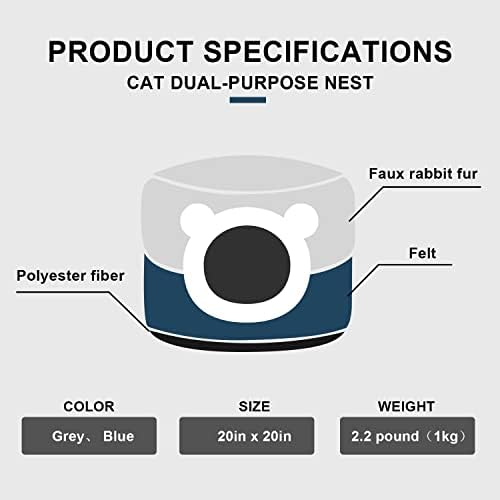πDiverse functions: dual use in one nest. It can be opened into a cat bed, which is warmer and suitable for pets in winter, or it can be flattened into a soft cat bed, suitable for hot weather. Round entrance and ear design, enclosed nest space allows small pets to curl up, snuggle, play, nap, rest, relax and sleep. Creating a sense of security can relieve pet anxiety and make pets safer!