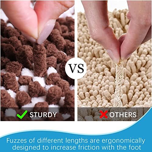 🐶 Super Absorbent: Muddy rug feature thousands of individual microfiber, super water absorbent doormat is more water absorbant than any others absorbent indoor rug, high pile chenille bathrug can help save your floor from dripping water when you’re stepping out of the bath sink, shower, spa, to make your feet feel the ultimate luxury enjoyment. pls place quick dry bath mats for bathroom on dry flat surface only, water under shaggy bathroom rugs will slip.