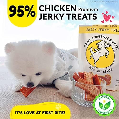 95% USA-SOURCED PREMIUM CHICKEN: Our Jazzy Jerky treats are SINGLE PROTEIN treats that smell and taste great! Our Jerky Dog Treats are a wholesome, healthy source of premium chicken that has been naturally smoked over real wood chips, giving it a wonderful aroma and unique smoked flavor that your dog will love!