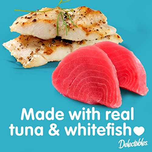 Searching for a treat your favorite feline canโt resist? Look no further. Delectable is the first gourmet lockable treat to combine tender, real chicken and succulent, plump fish in three purr worthy textures: bisque (smooth), Stew (hearty) and Chowder (creamy). each recipe boasts nutritious and flavorful ingredients delectably blended for easy-to-lap eating with items for kitten, adult, and senior life stages. The unique consistency, combined with our superior palatability technology, makes delectable lockable treats so delicious cats lick the bowl clean! The perfectly sized 1.4 ounce Pouch is easy to open and pour for a quick snack or food topper to entice finicky eaters.