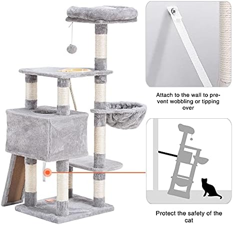 Wide scratching board: Cats love grinding their claws. The scratching board on the cat tree add fun for scratch and protect the furniture suffer from the catsβ claws