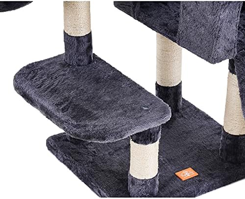 Wide scratching board: Cats love grinding their claws. The scratching board on the cat tree add fun for scratch and protect the furniture suffer from the catsβ claws