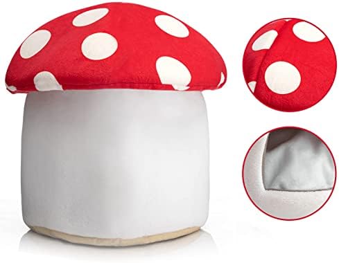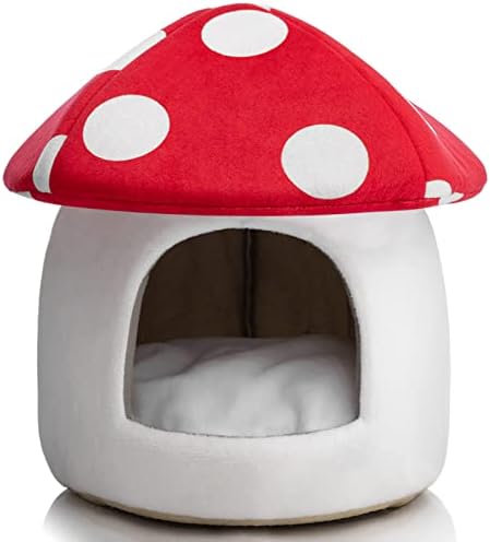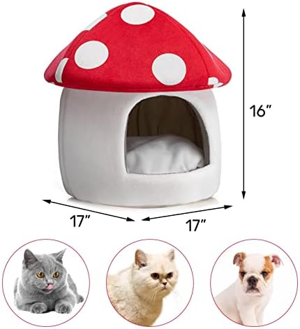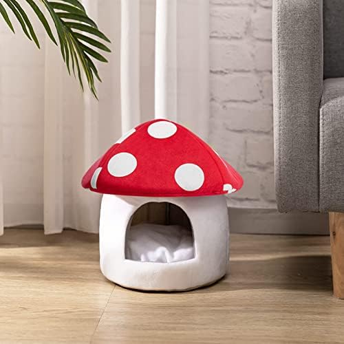 Hollypet Cozy Pet Bed Warm Cave Nest Cat Sleeping Bed Mushroom Shape Puppy House for Cats, Red