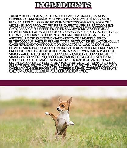A tri-protein mix of chicken, salmon and turkey to mitigate any protein allergies