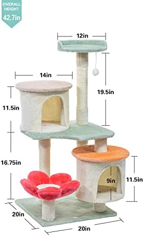 HYABi 42.7 inch Flower Cat Tree Tower Condo Furniture Apartment Plush Habitat Kitten Amusement Platform with Scratch Posts Toy Ball Pet House Play