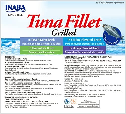 Here at Inaba, we know that your cat is a beloved member of your family. That’s why our Natural, Premium Hand-Cut Tuna Fillets are made from high-quality, human-grade wild-caught tuna. Then we lightly grill the meat and infuse it with a succulent broth to lock-in moisture. Each fillet contains 71% moisture, which you cat needs for health, and only a third of the calories of traditional dry snacks making these a treat you can feel good about feeding. We’ve also added Vitamin E for their immune system and Green Tea Extract as an antioxidant. Vacuum packed for freshness in an innovative, UV-blocking packaging film, you can see how moist and delicious each fillet is, you might even be tempted to break off a piece for yourself. Each flaky fillet can be broken down by hand to feed your kitty a piece at a time and promote interaction or place a portion on wet/dry cat food as a topper/complement. However you choose to feed, they will gobble up the delicious pieces. Available in seven savory seafood flavors including Tuna Broth, Scallop Broth, Homestyle Broth, Crab Broth, Extra Tender Tuna Broth, Shrimp Broth and Calamari Broth, plus a variety pack, cats of all stages (kitten to senior) will be able to find a fillet flavor they love. Inaba makes snack time fun for you and your feline.
