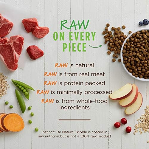 NATURAL DOG FOOD WITH GRASS FED LAMB: Instinct Be Natural Real Lamb & Oatmeal dry dog food is made with responsibly sourced animal protein as the #1 and #2 ingredients, plus whole grains, fruits & vegetables, and omegas.