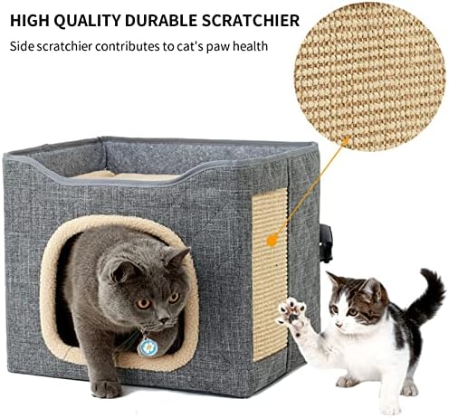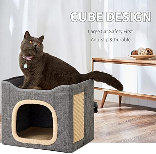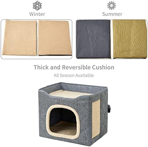 โคFoldable Design & Space Saving: Large cats hideaway condos can be assembled quickly and can be folded into a flat shape,which can be stored easily.It also easy storage and travel.Top hard cushion and bottom soft cushions of cat house are removable,large cat hole bed can provide great comfort in summer and winter.