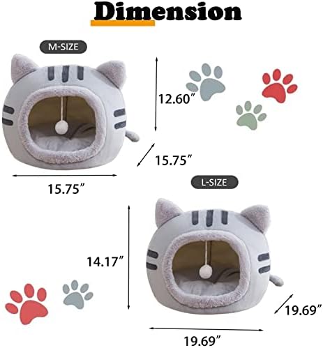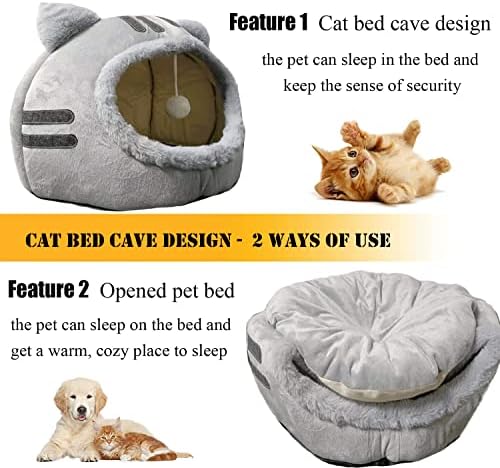 🐱【2-IN-1 USAGE DESIGN】 Our cat bed not only can be used as a cave cat bed, but also can be used a cat bed mat when you press down the cover and then put the pillow on it. It is a good deal! The lively cat design adds much fun to your pets’ sleeping time.