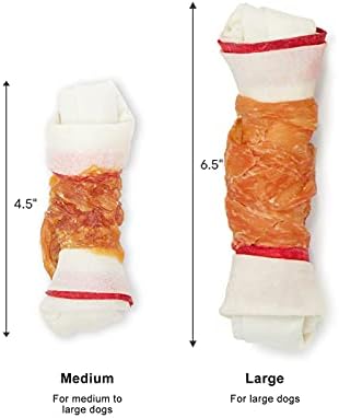 【Natural&Safe Treats】Dog Rawhide Bones 100% Natural ingredients, no harmful ingredients. Chicken meat wrapped in the middle, tasty rawhide treats would hold appeal for your dogs.
