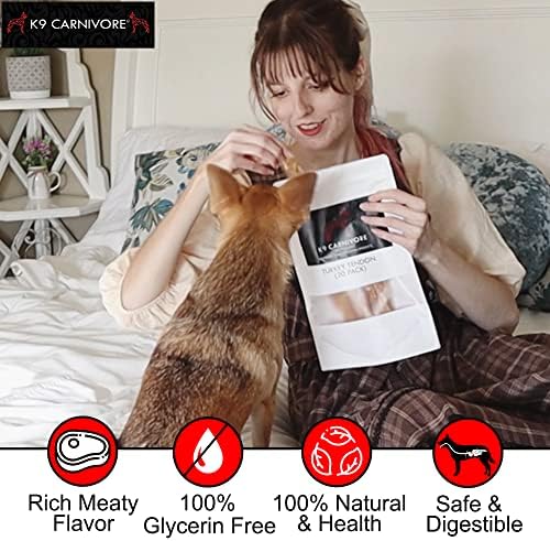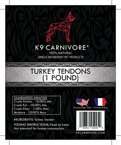 💠 [ CONTAIN ONLY ONE INGREDIENT ]: K9 CARNIVORE Turkey Tendon is completely Glycerin free Natural Dog Chews Treat . Our tendons is made from 100% Natural single ingredient product, non-irradiated suitable even for dogs with sensitive tummies, it’s 100% digestible for your dog’s sensitive stomach. Your dog will sit, stay, and beg for the amazing taste of our turkey tendons. Lightweight, easy to break into small pieces. Treat your dog on every adventure!
