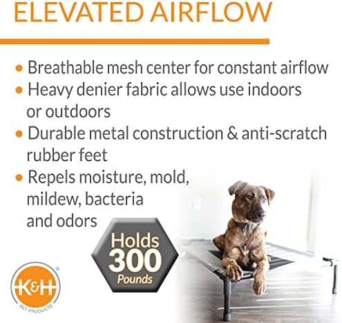 K&H Pet Products Cooling Elevated Dog Bed Outdoor Raised Dog Bed with Washable Breathable Mesh, Dog Cot Bed No-Slip Rubber Feet, Portable Dog Cot Indoor Outdoor Dog Bed, X-Large Gray/Black Mesh